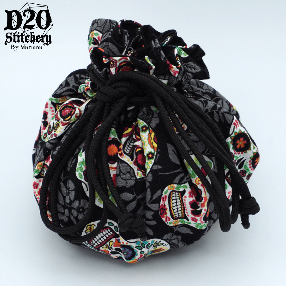 A hand-crafted, 8-pocket drawstring dice bag to take on all your epic quests! So big, there will even be room left over for a mini, tokens, or whatever your heart desires. This bag looks small on the outside, but has tons of room on the inside! The bag can be opened completely to transform into a dice tray, and the sides still stay up to keep excited dice from bouncing away!